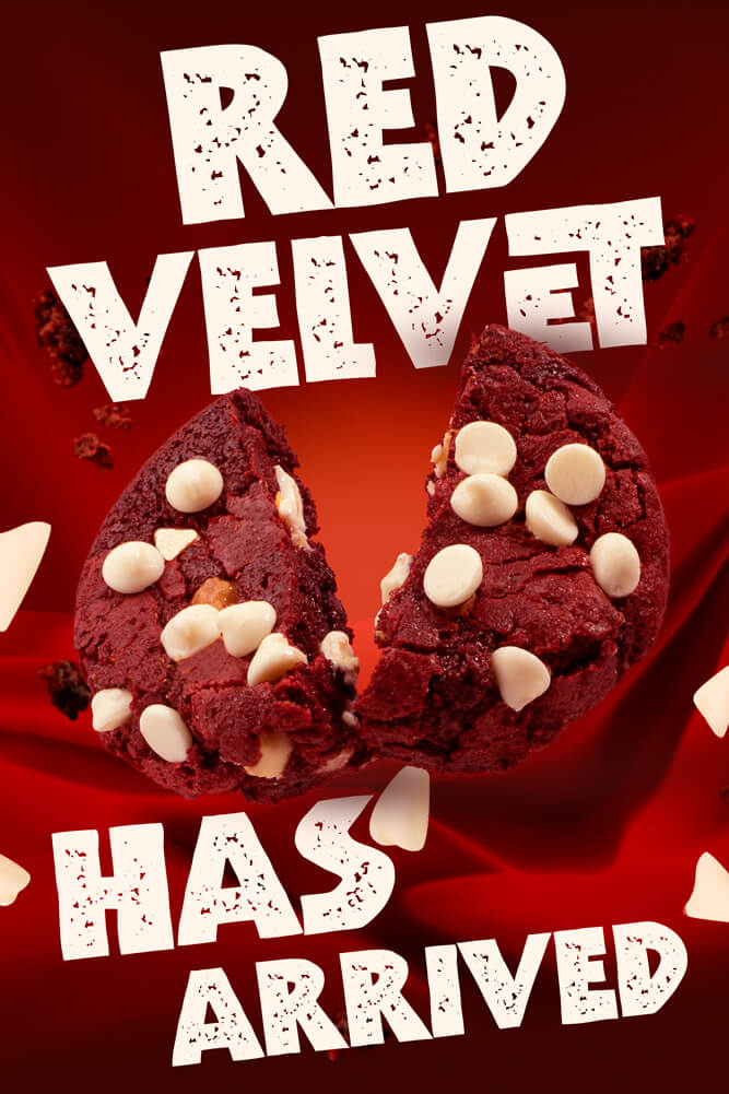 Enjoy our soft and chewy Red Velvet Cookies, with the perfect blend of richness and classic flavor. Available June only!