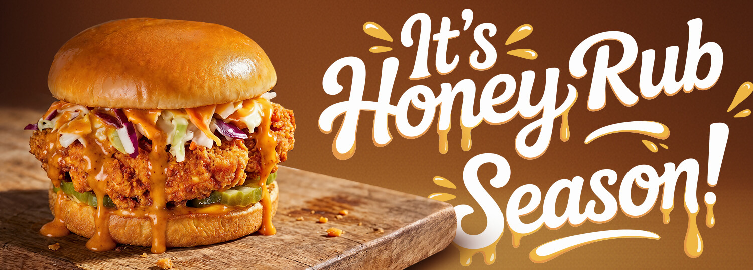 Try our new Honey Rub for the perfect balance of honey sweetness and signature heat. Available April only!